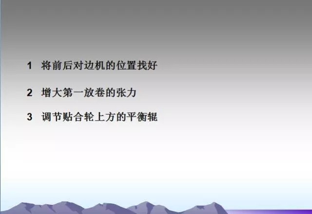 背輥及各過(guò)輥粘有異物或使用過(guò)多的水。需要經(jīng)常檢查,及時(shí)發(fā)現(xiàn)并清理,并注意不要損傷輥面。
